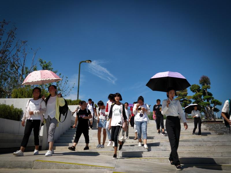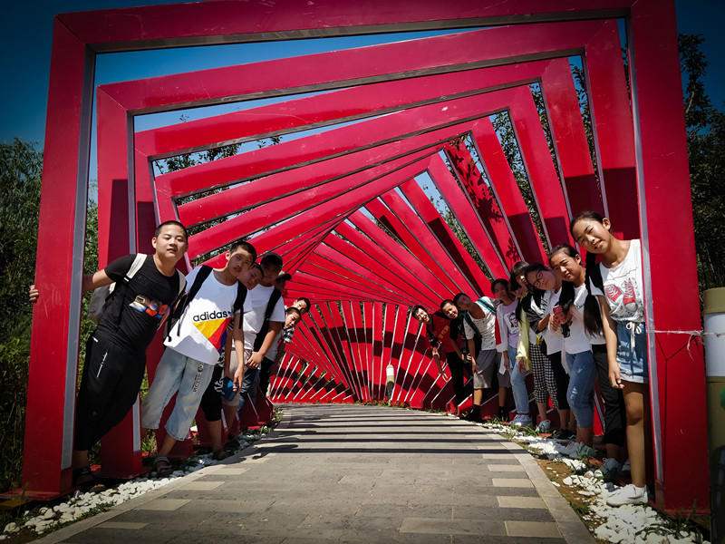 晴空万里,艳阳高照,对于正值雨季的秦皇岛来说是少有的好天气。十五名毕业生怀着激动的心情,在校长和班主任的带领下,统一乘车按照约定的时间来到园博园正门处集合。